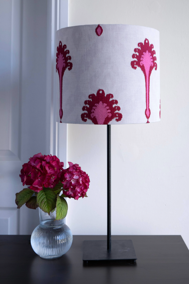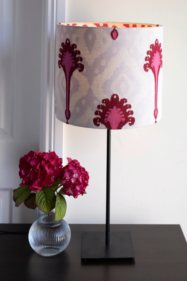 Double-Sided Lampshade – Cream Cotton with Cerise Patterns