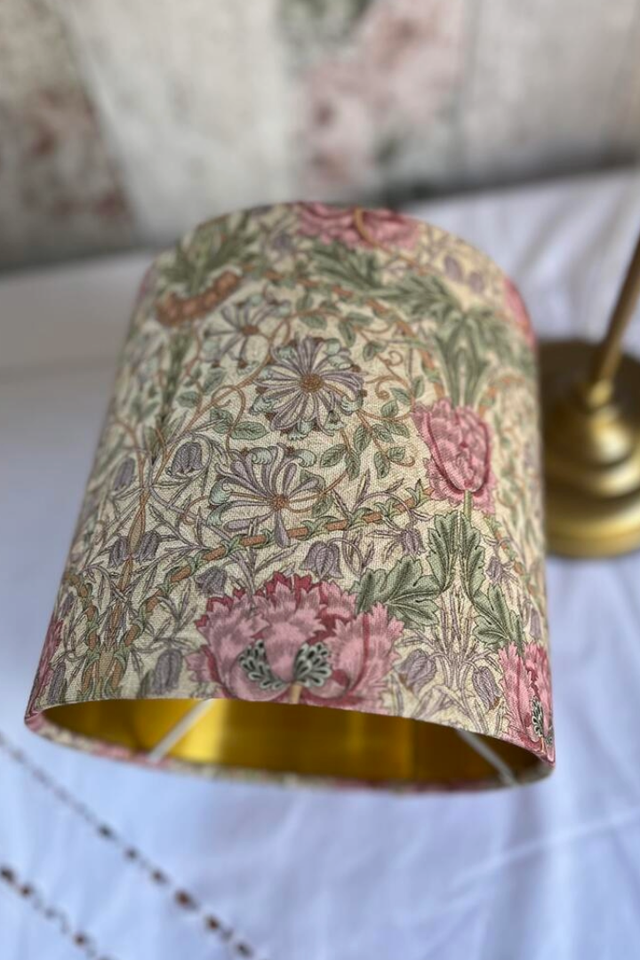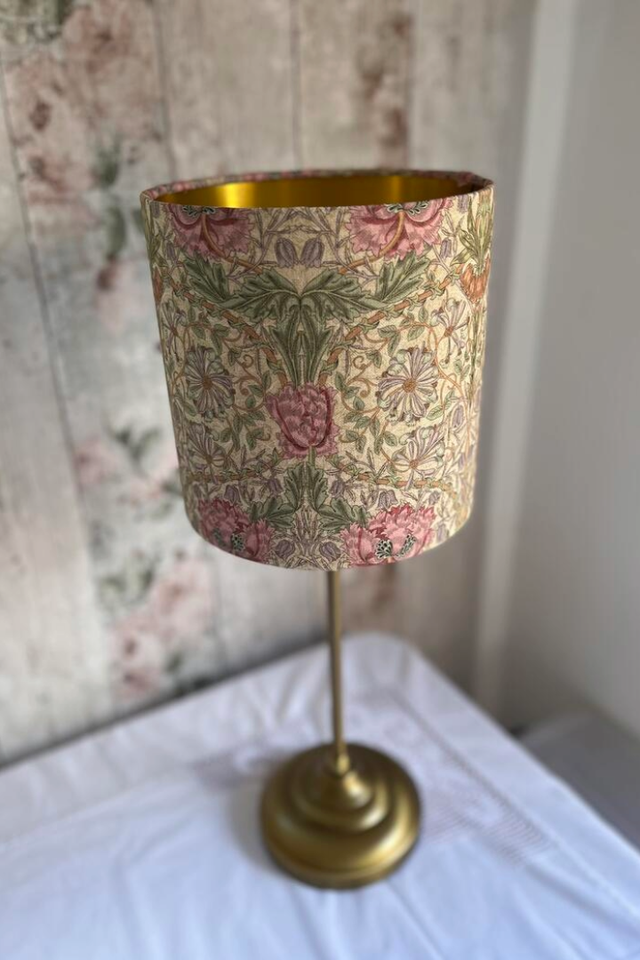 William Morris Floral Drum Lampshade (Brushed Gold Lining)